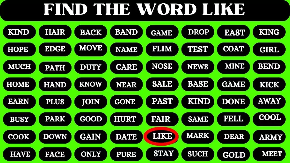 Sebbene la parola “Like” sia presente, potrebbe non essere immediatamente evidente a causa della sua integrazione con i caratteri circostanti. Per individuarla, è necessario esaminare attentamente l’intera immagine e cercare la parola nascosta.