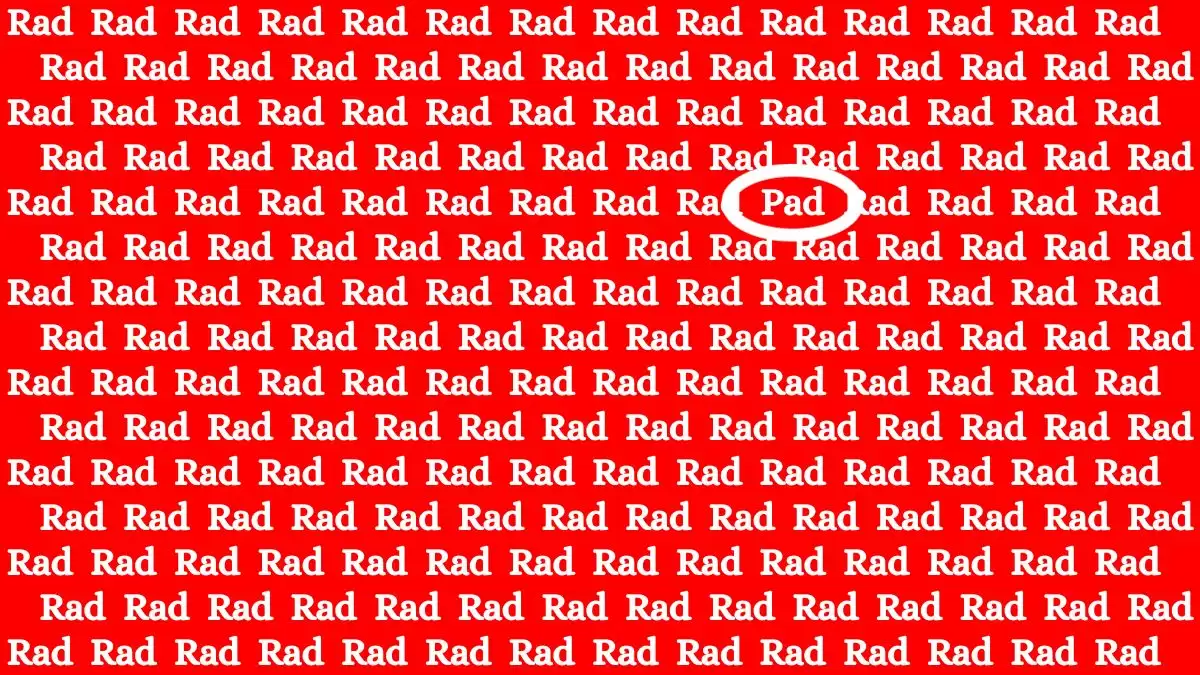 Iniziate la scansione sistematica concentrandovi su una sezione dell’immagine alla volta. Potete iniziare dall’angolo in alto a sinistra o da qualsiasi altro angolo che vi faccia sentire a vostro agio e spostare lo sguardo metodicamente sull’immagine. Prestate molta attenzione alle singole lettere all’interno dell’immagine. Cercate le lettere che compongono la parola “Pad” tra quelle che formano “Rad”.