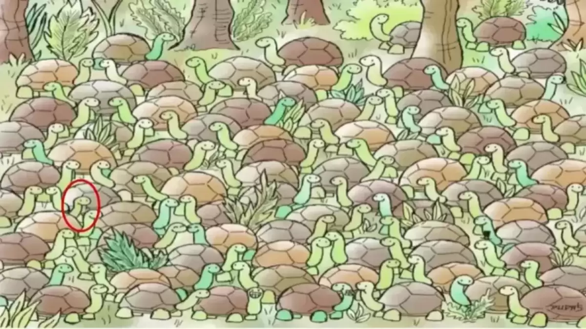 Solo chi ha una vista eccezionalmente acuta puรฒ individuare il serpente nascosto tra le tartarughe entro 15 secondi in questa illusione ottica tratta dall’immagine sottostante. Basta scrutare attentamente l’immagine per individuare l’oggetto nascosto. Se incontrate qualche difficoltร , potete fare riferimento all’immagine risolutiva qui sotto per scoprire la risposta corretta. Si prega di utilizzare la lingua inglese per comunicare.