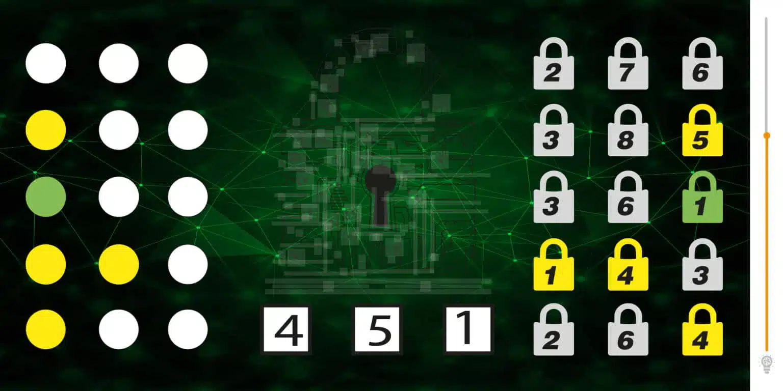 Un punto bianco significa che uno dei numeri non è presente, un punto giallo significa che uno dei numeri è presente ma non nella casella giusta e un punto verde significa che uno dei numeri è presente nella casella giusta.