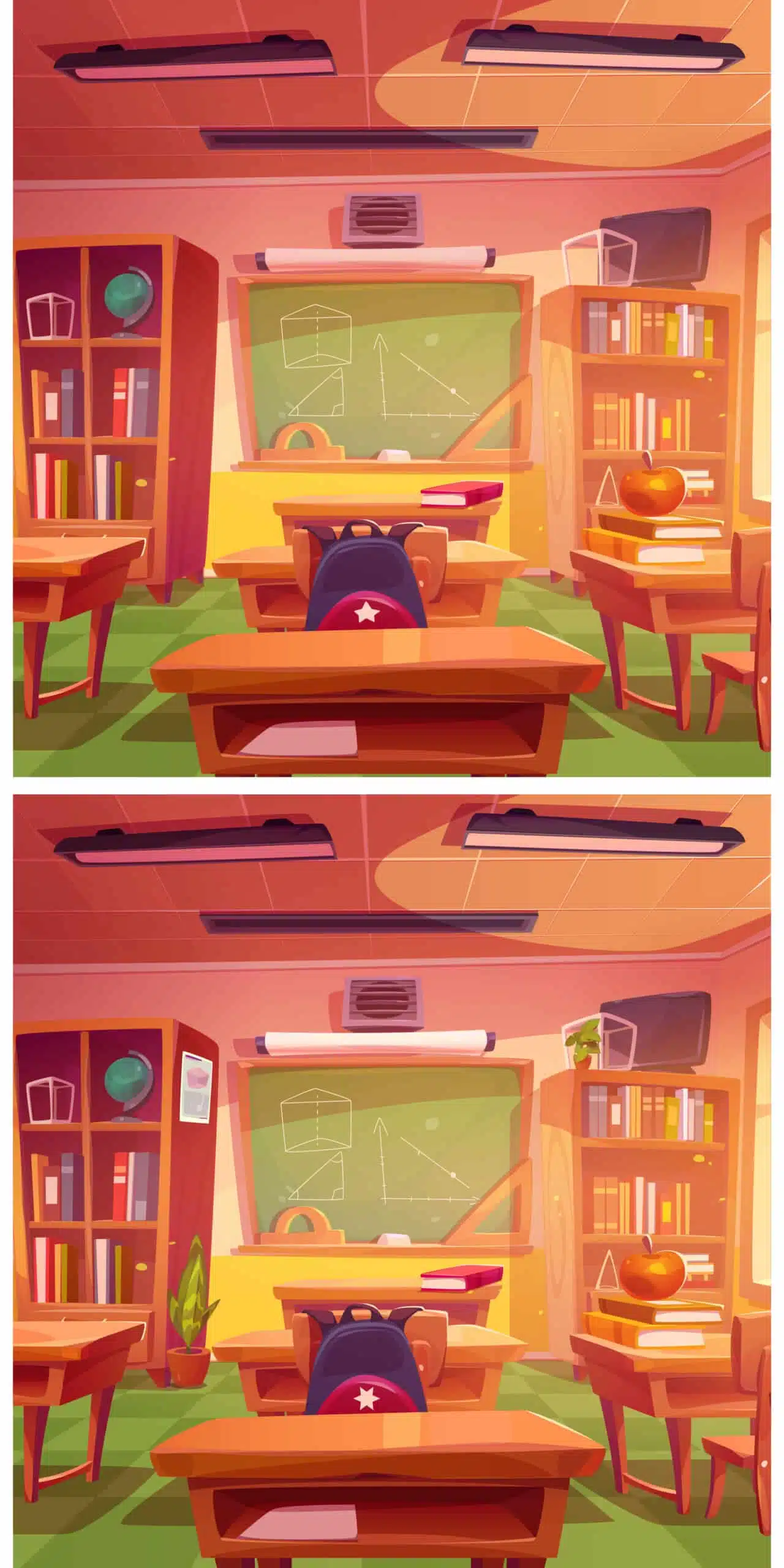 Abbiamo messo insieme per te due immagini di aule che a prima vista sembrano identiche, ma non lasciarti ingannare!