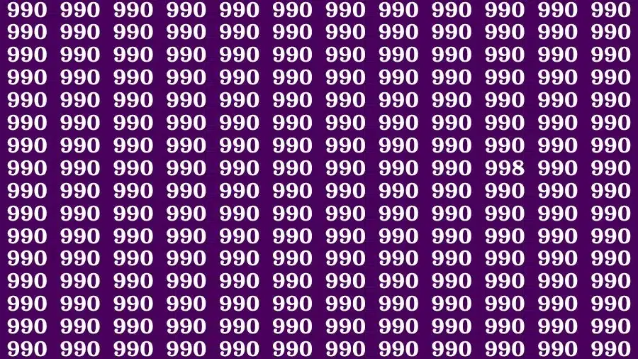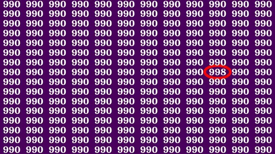 Cercate di trovare l’illusione ottica del numero 998 entro 14 secondi. Supponiamo che non abbiate trovato il numero 998 nascosto entro 14 secondi. Non preoccupatevi. Prendetevi il tempo necessario per trovare la soluzione di questa Illusione ottica. Se riuscirete a trovare la risposta, apprezzeremo i vostri sforzi. In caso contrario, controllate qui sotto per trovare la soluzione di questa illusione ottica.